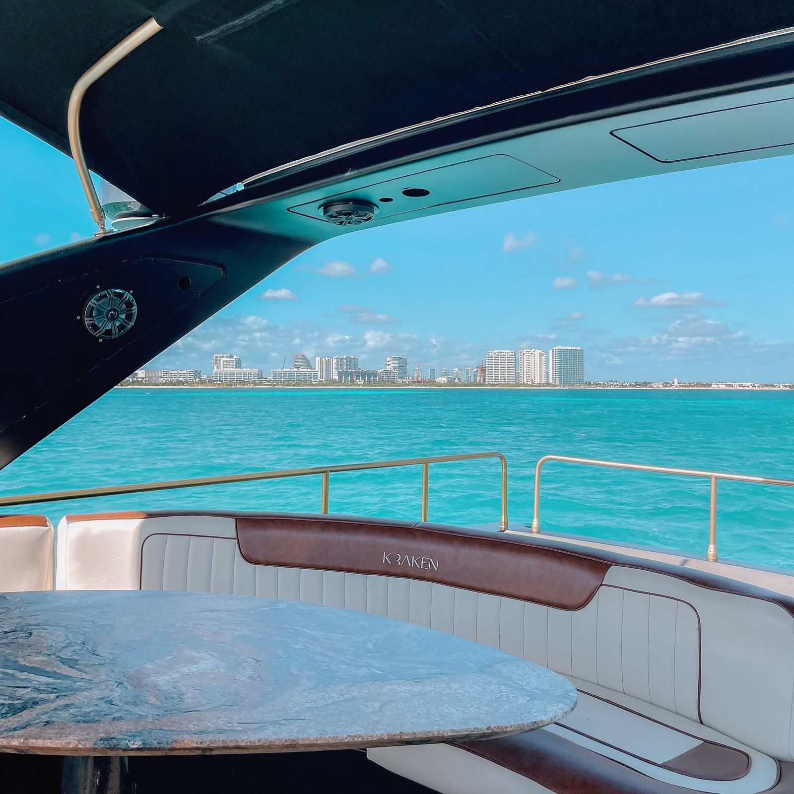 AZIMUT 60 FT BLACK KRAKEN 16 Guests 24 Beer 24 Water 24 Soft Drinks Ice 3 staterooms – 2 bathrooms – sun deck – salon – Bluetooth Sound – Snorkel