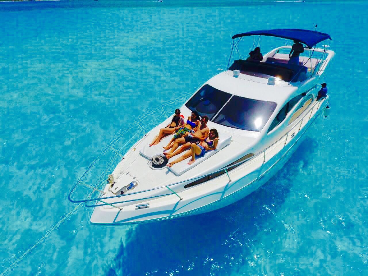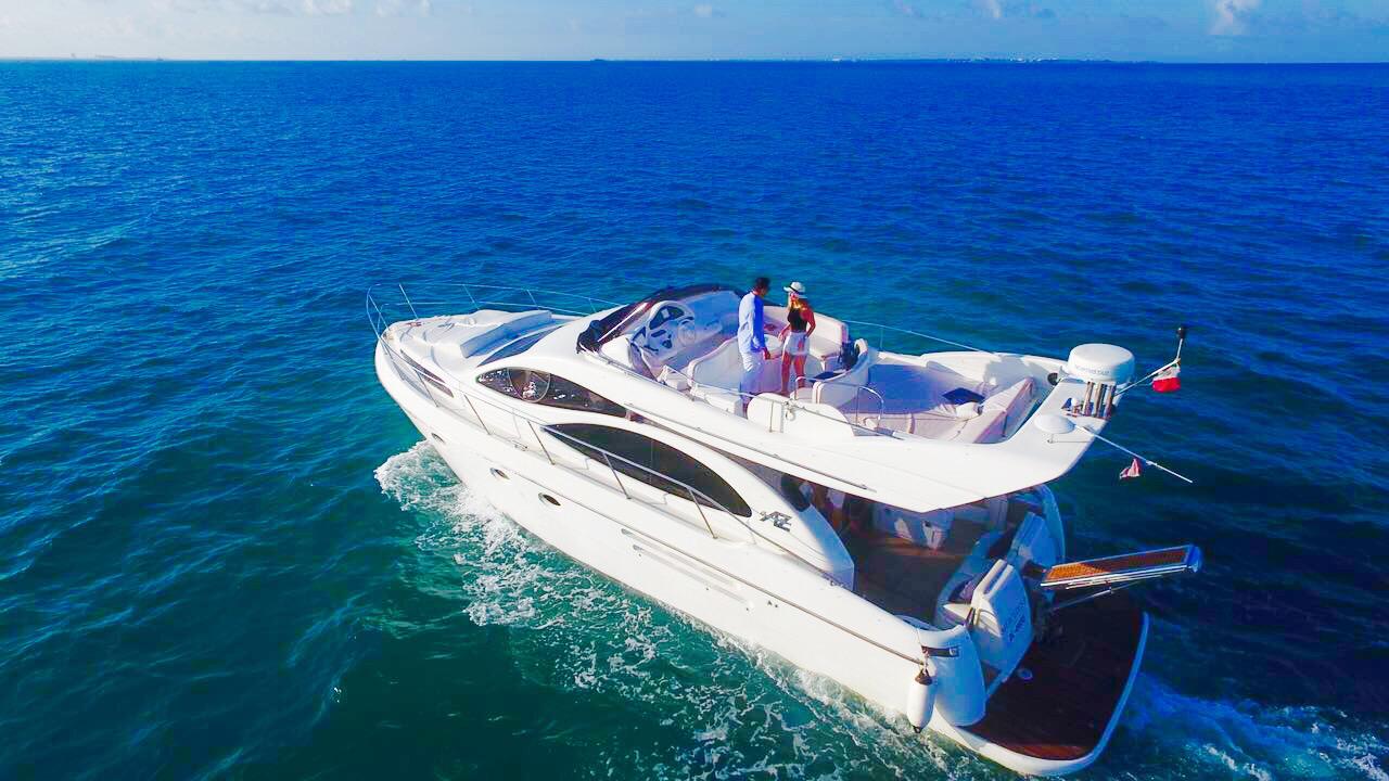 AZIMUT Premiere 47 FT 16 Guests 24 Beer 24 Water 24 Soft Drinks Ice / Snacks 2 staterooms – 2 bathrooms – sun deck – salon – Bluetooth Sound – Snorkel