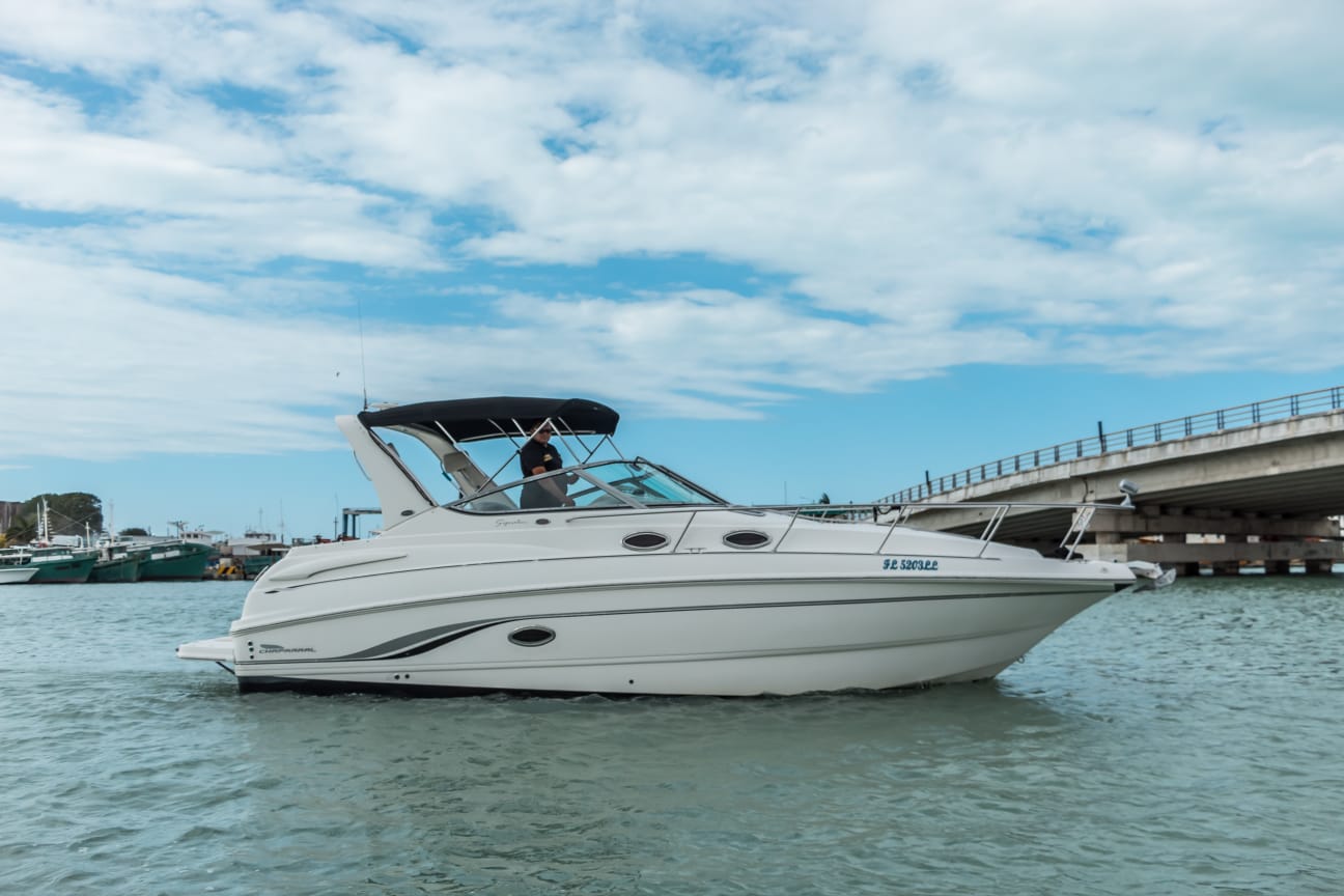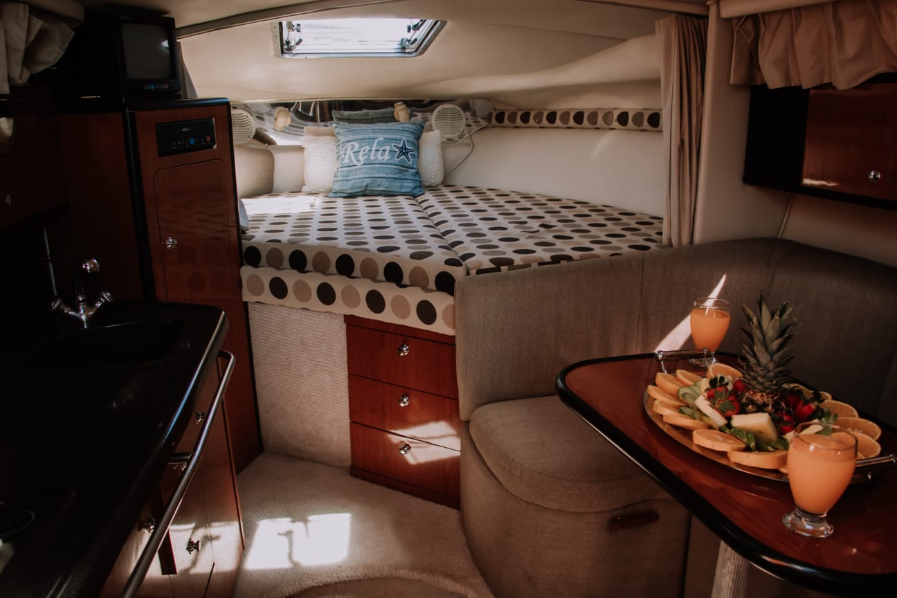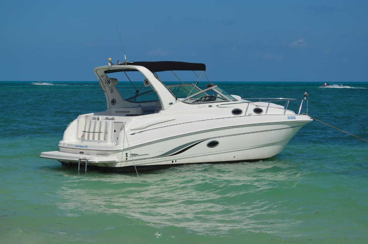 CHAPARRAL 33 FT 10 Guests 24 Beer 24 Water 24 Soft Drinks Ice Private Beach encounter Cabin – 1 bathroom – sun deck – Bluetooth Sound, Snorkel.
