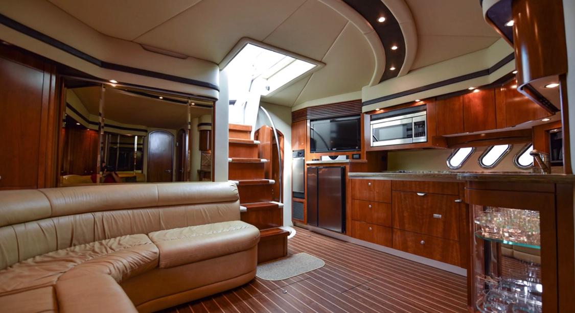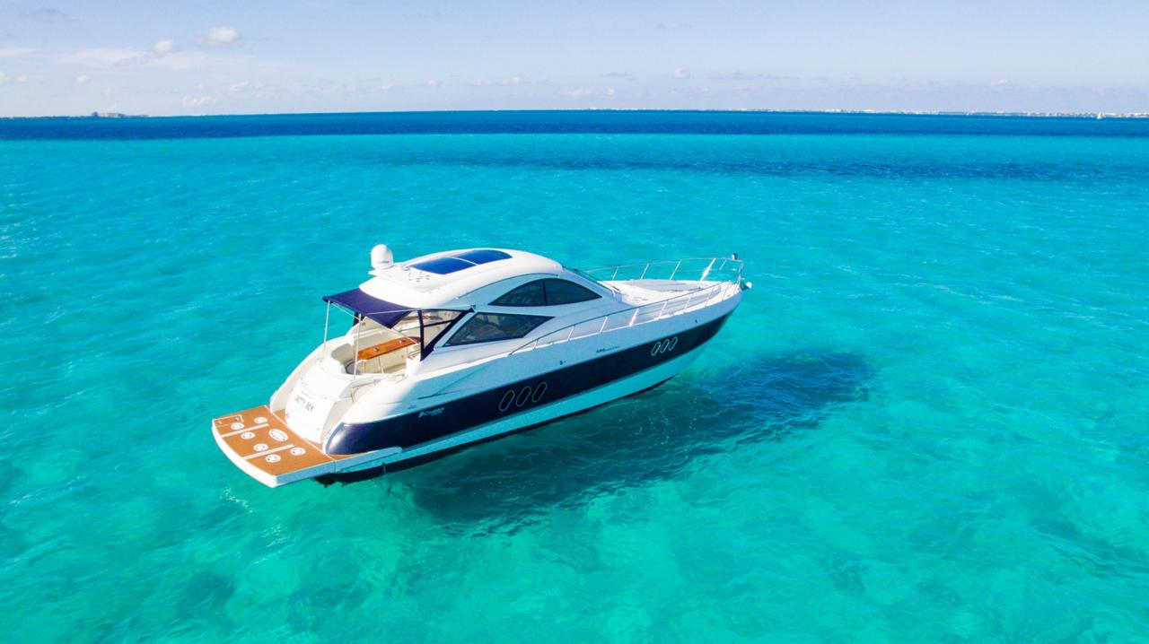 CRUISER COUPE 52 FT KNOTY BOY 15 Guests 24 Beer 24 Water 24 Soft Drinks Ice 2 cabins – 2 bathrooms – sun deck – lounge – Bluetooth Sound – Snorkel