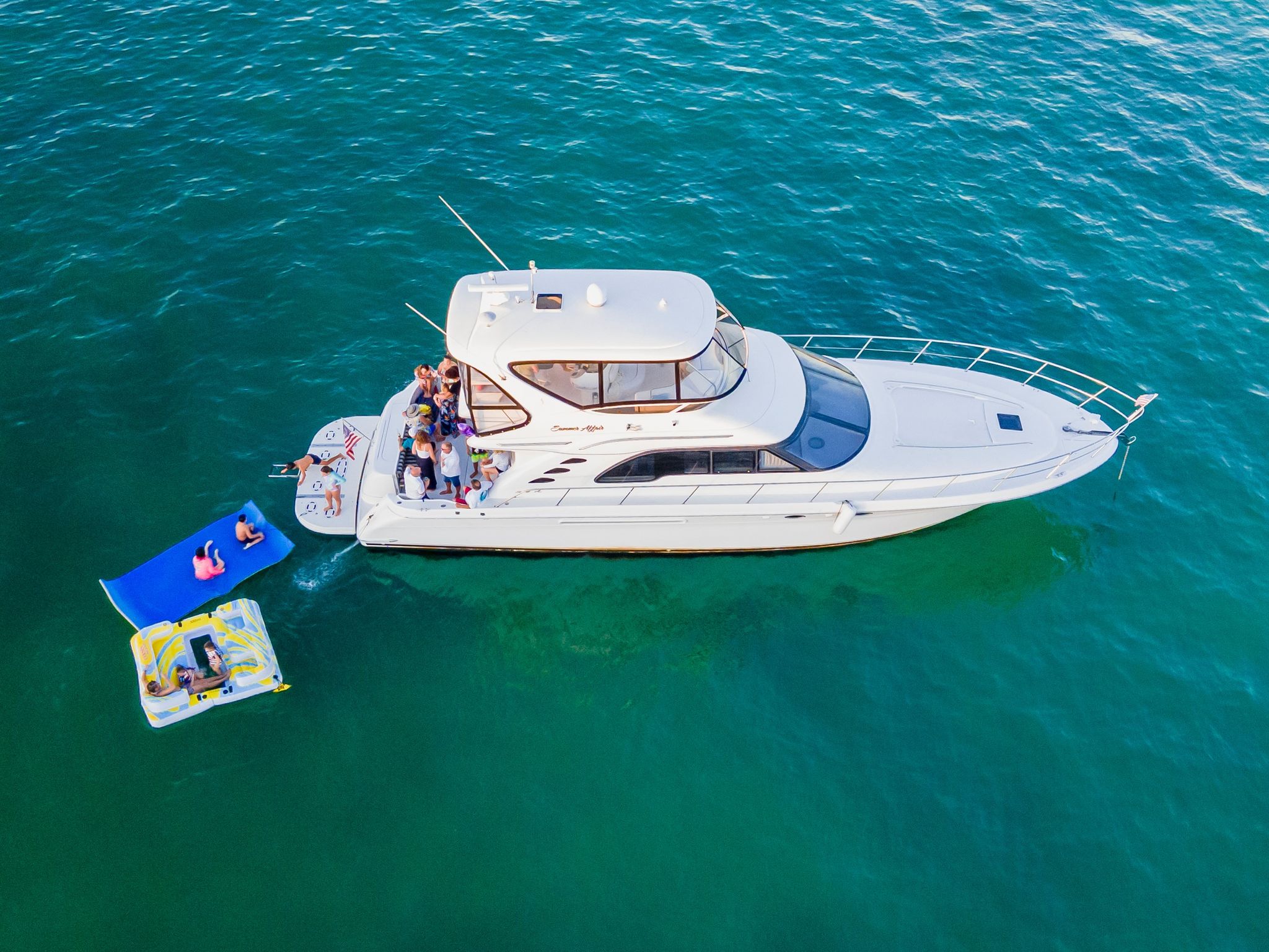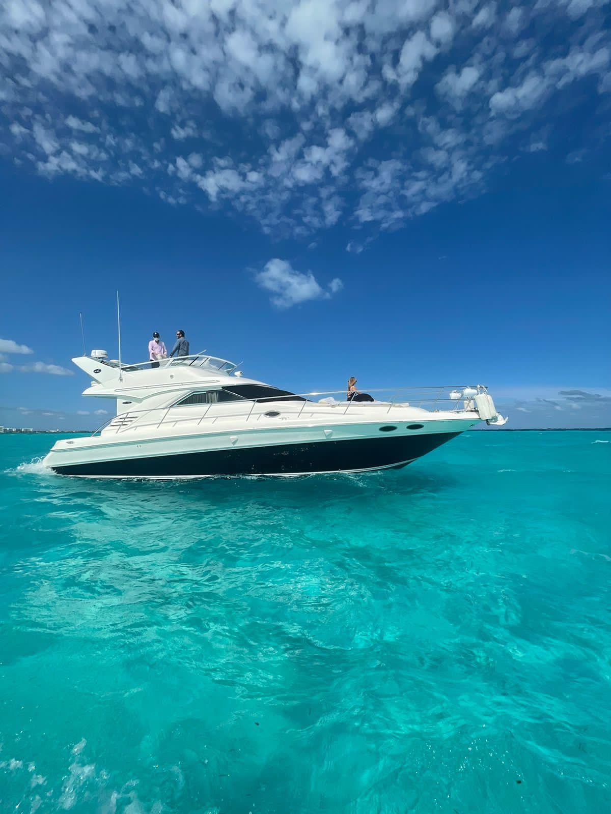 SEA RAY FLY BRIDGE 44 FT 14 Guests 24 Beer 24 Water 24 Soft Drinks Ice / Ceviche Snacks White or Blue choice