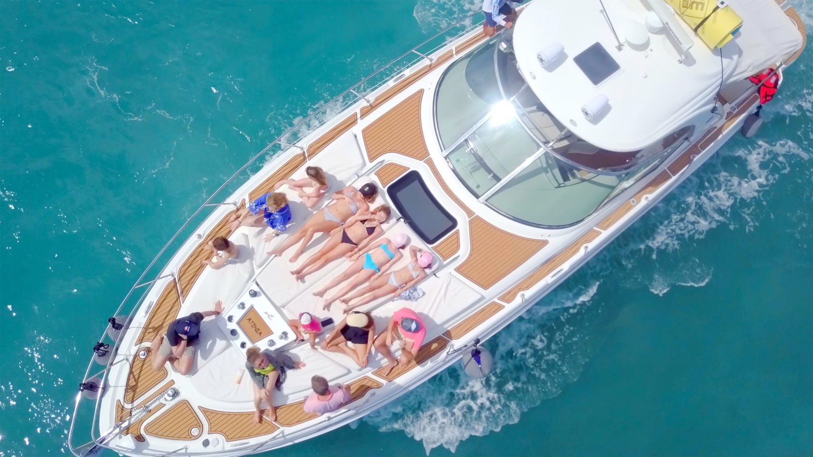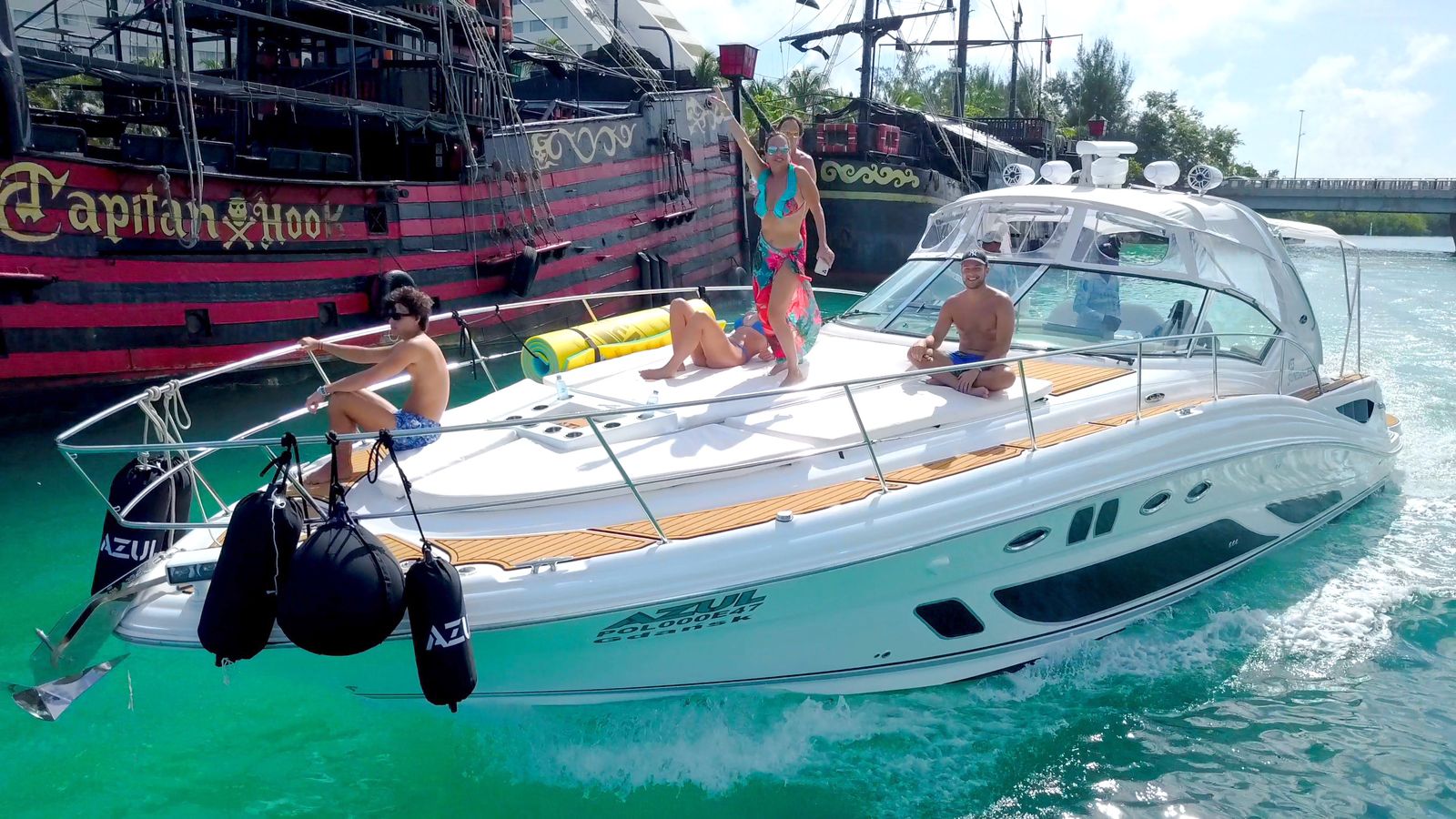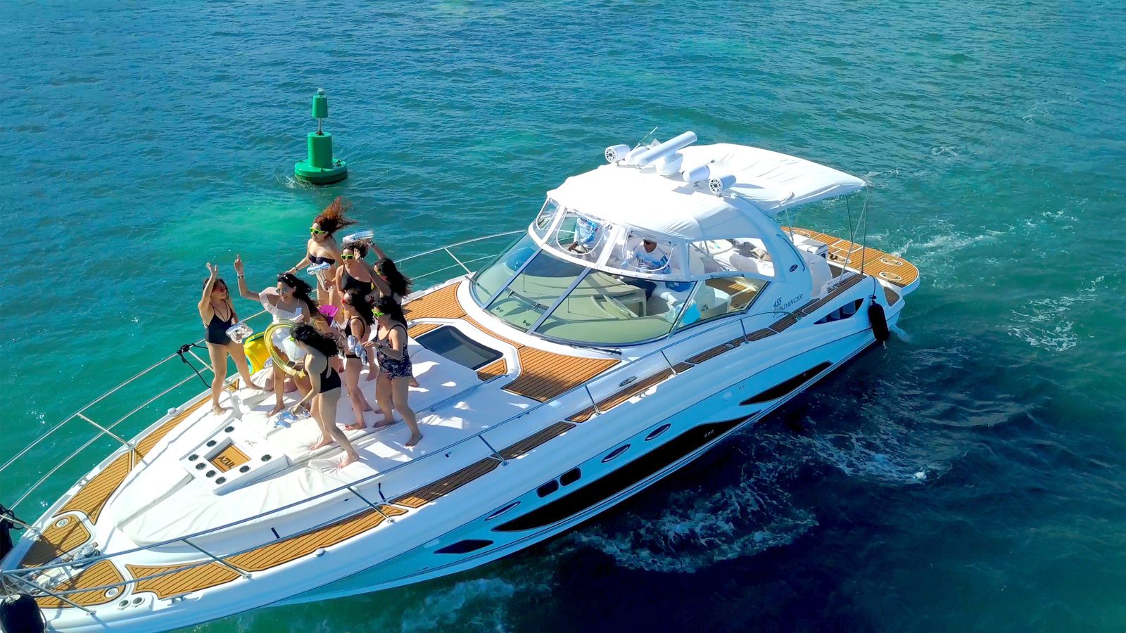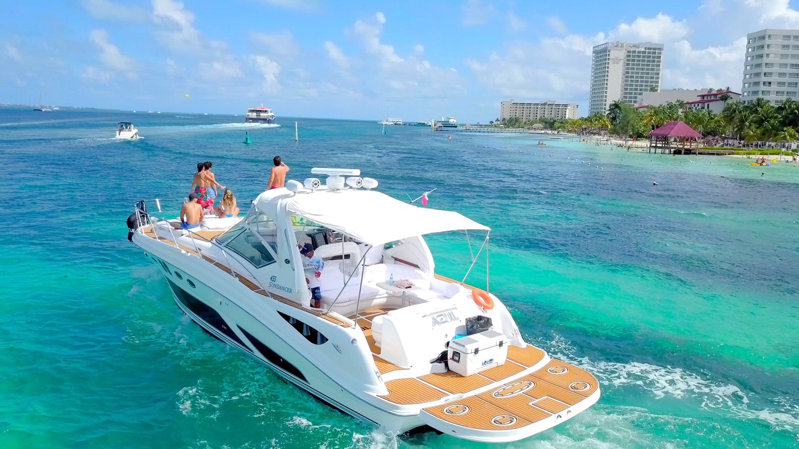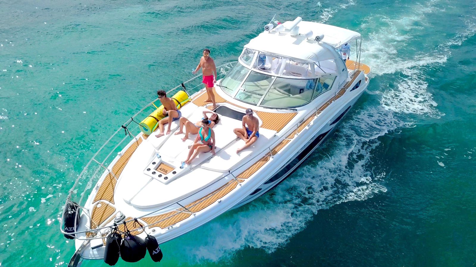 SEA RAY 46 FT AGORA CLASS 15 Guests 24 Beer 24 Water 24 Soft Drinks Ice / Ceviche Snacks 2 Cabins – 2 bathrooms – sun deck – lounge – Bluetooth Sound – Snorkel