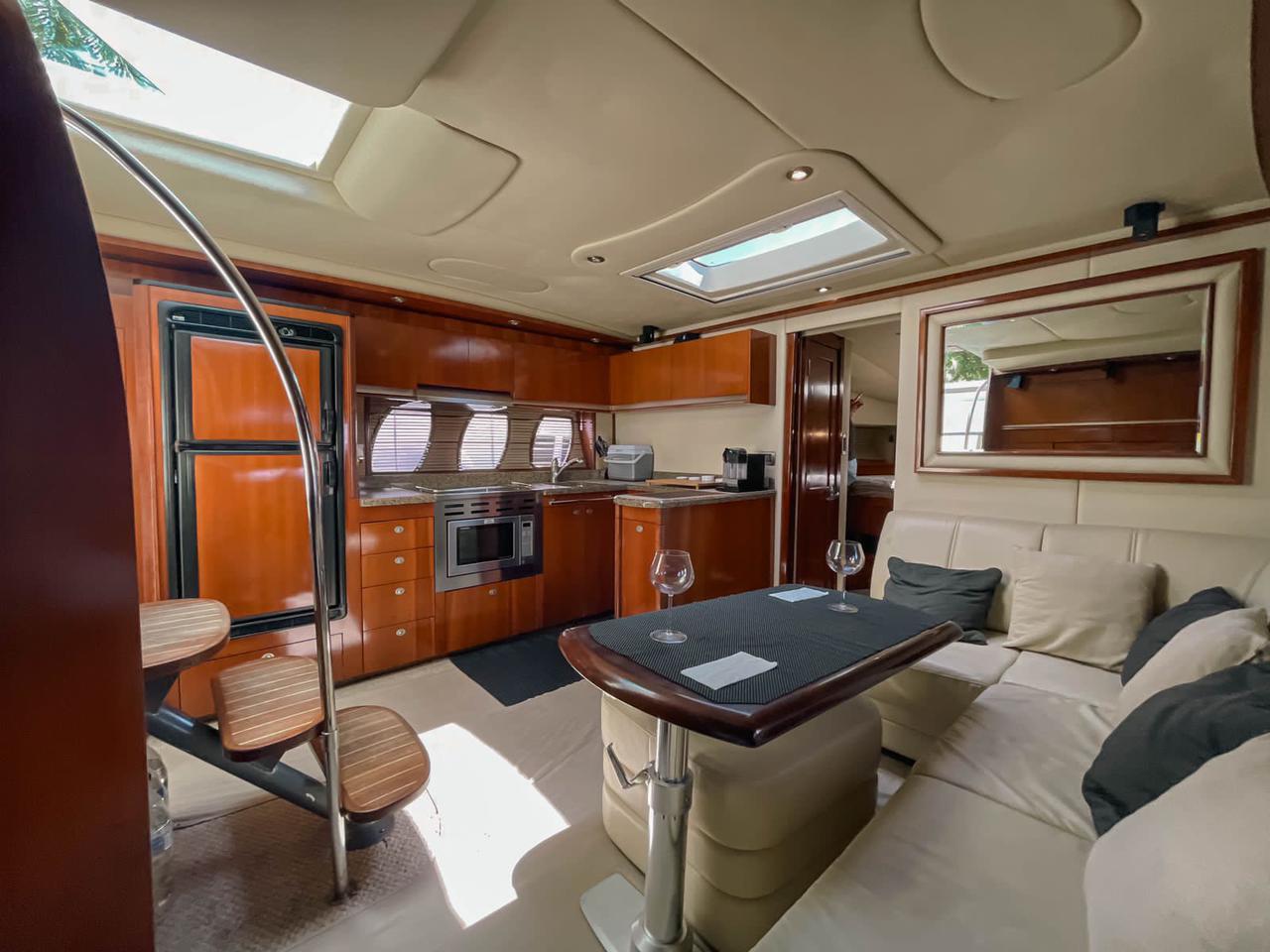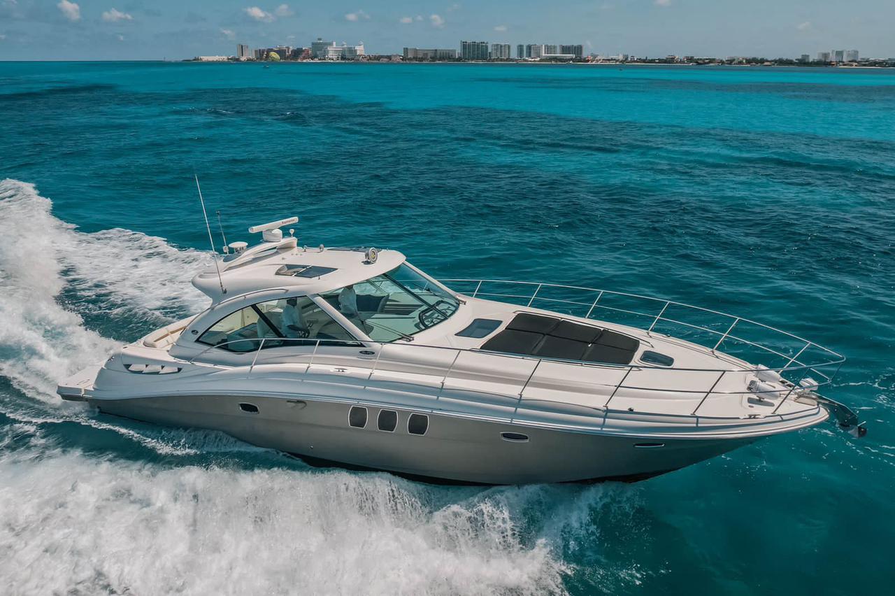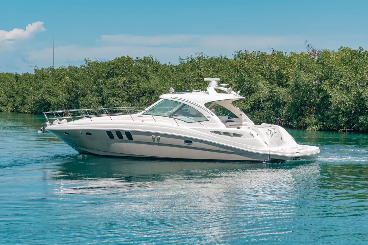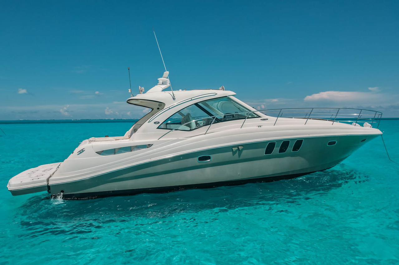 SEA RAY 50 FT CAVA PREMIERE 16 Guests 24 Beer 24 Water 24 Soft Drinks Ice / Ceviche Snacks 2 Cabins – 2 bathrooms – sun deck – lounge – Bluetooth Sound – Snorkel