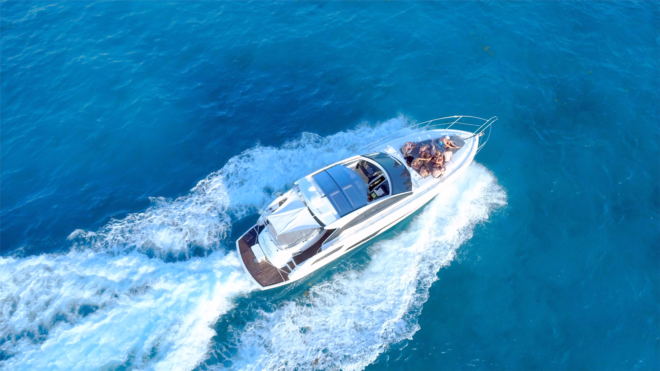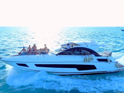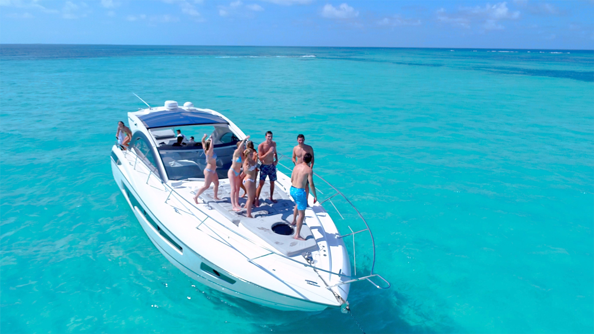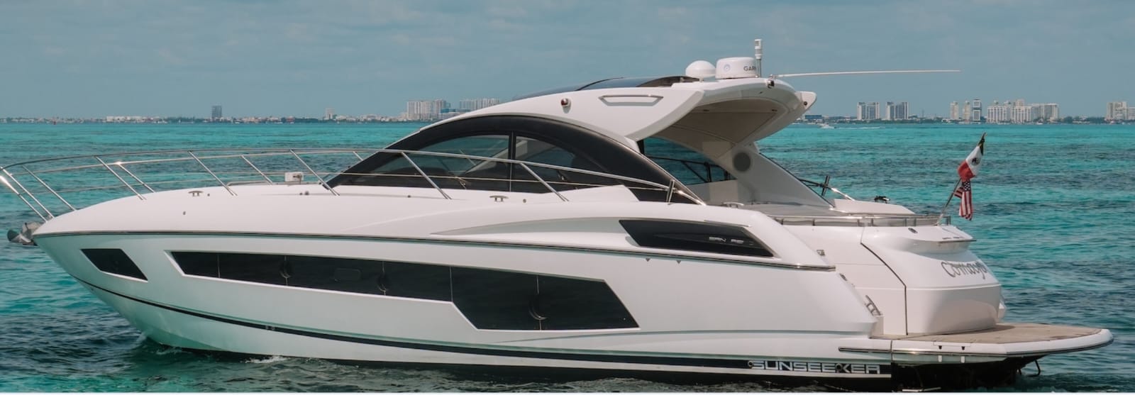 SUNSEEKER 52 FT COMAYE 15 Guests 24 Beer 24 Water 24 Soft Drinks Ice Cabin – 1 bathroom – sun deck kitchen – Bluetooth Sound, Snorkel. A/C